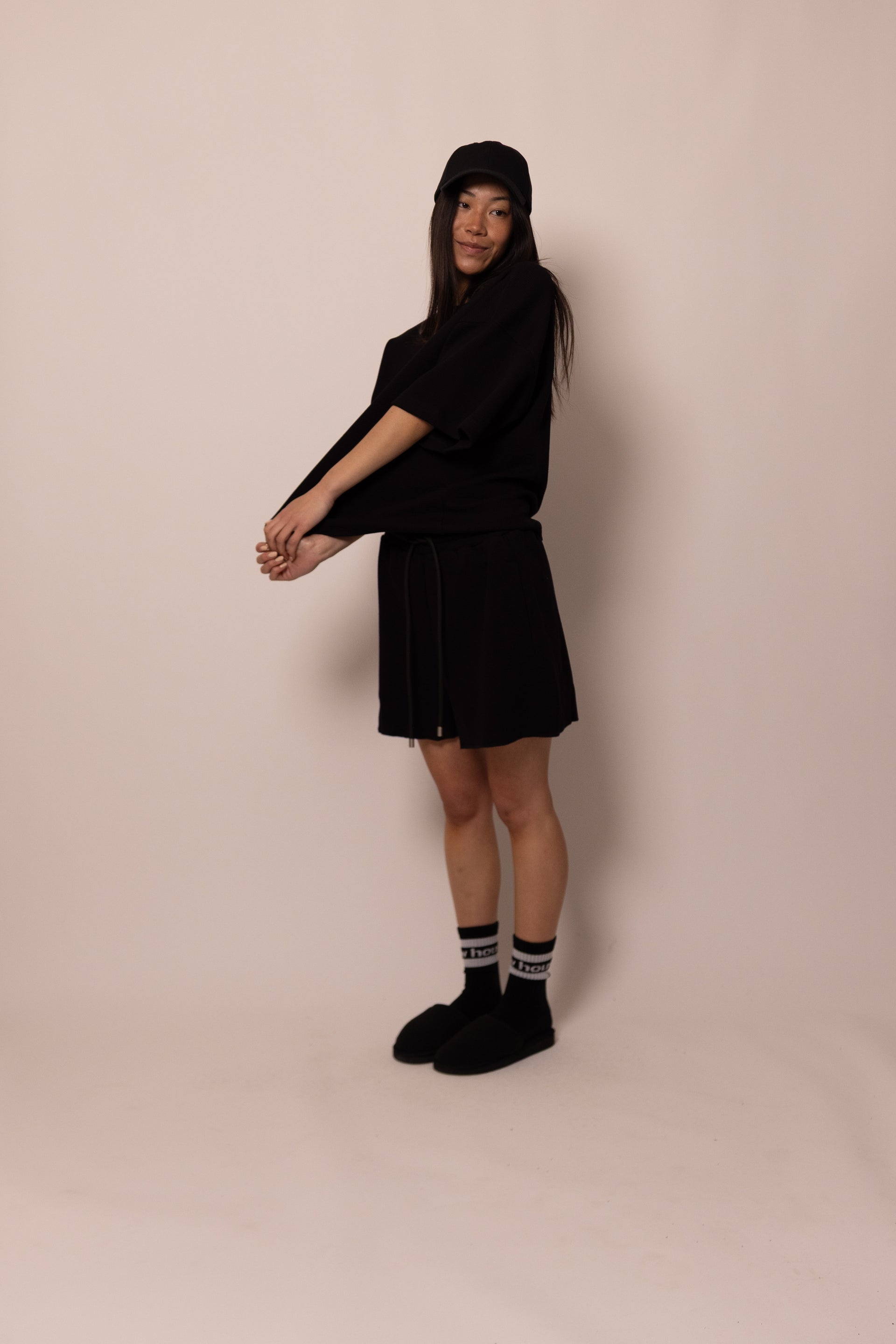 the baseball hat is an elevated, low profile cap with a vegan leather strap and soft satin lining. to block the sun or to spice up your look, we love wearing our baseball hat with all the drew basics!