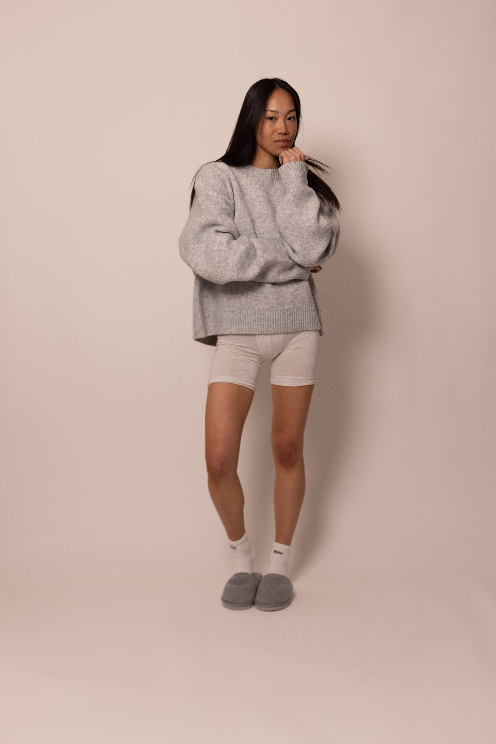 the piggy lou sweater is our favorite sweater. it's perfectly cozy and warm, we love wearing ours with the piggy lou pant and house slippers by the fireplace with a good book :)