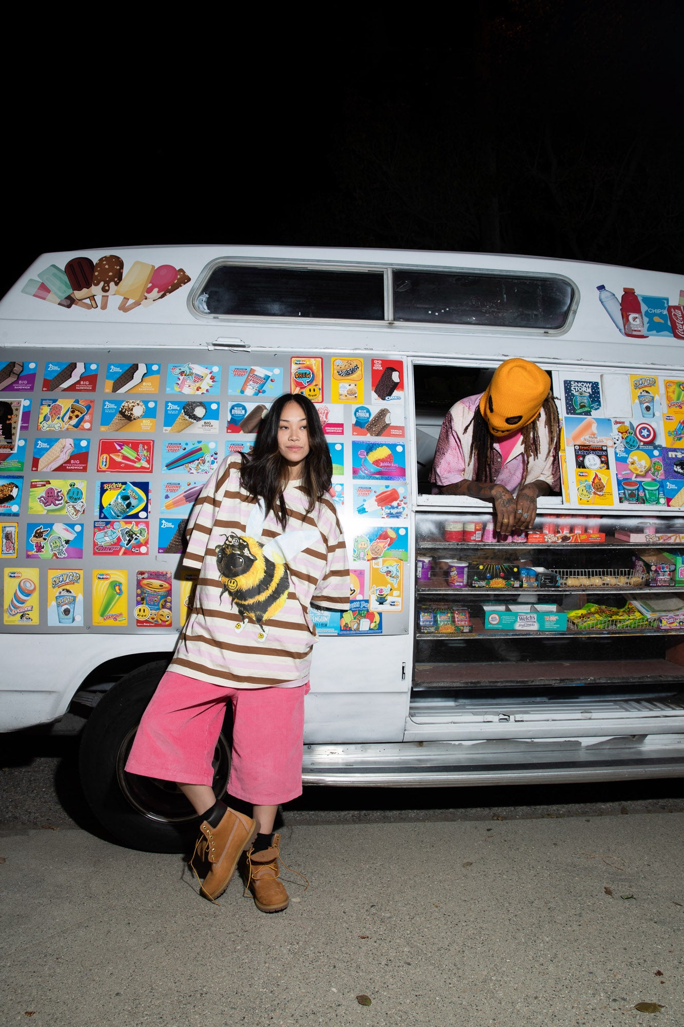 embroidered mascot on back pocket